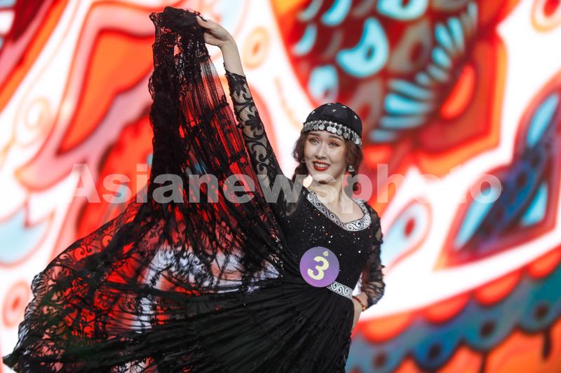 图片说明:2020年11月21日,参加2020世界旅游小姐中国年度冠军总决赛的佳丽进行才艺表演。