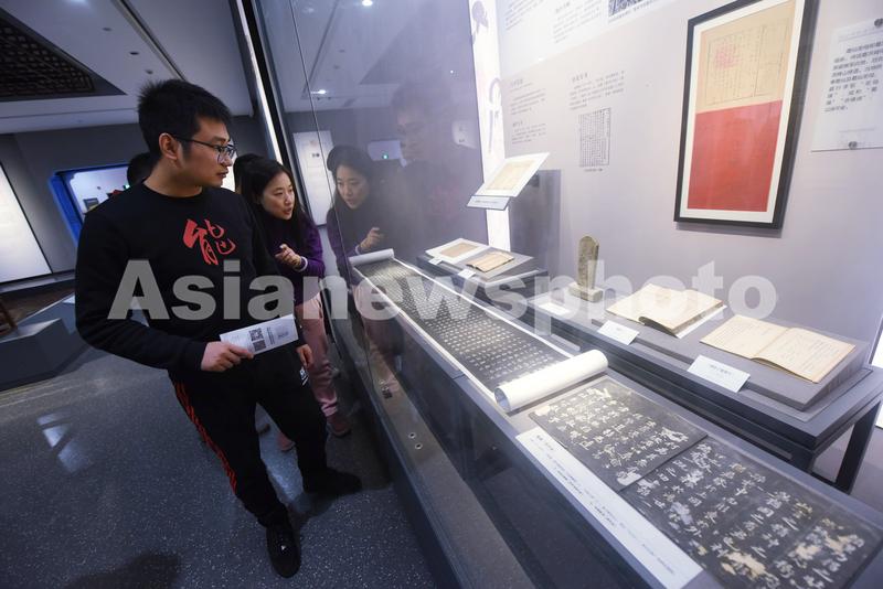 2020年11月25日,观众在浙江中医药博物馆(新馆)观看“天地人”上分布的人体经脉。