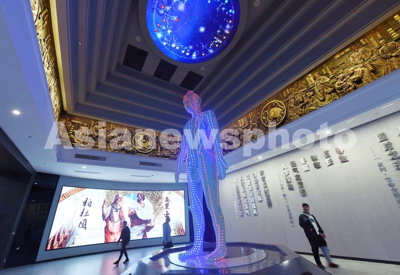 2020年11月25日,观众在浙江中医药博物馆(新馆)观看“天地人”上分布的人体经脉。