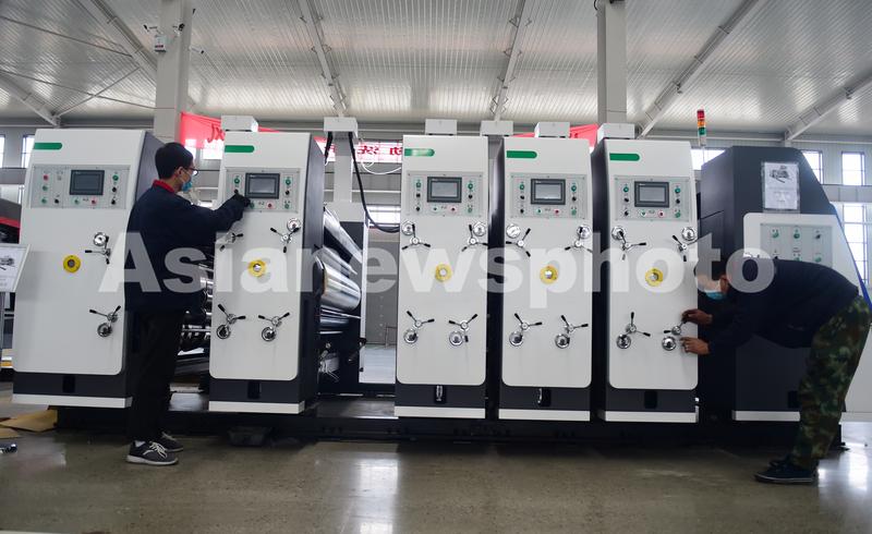 图片说明:11月26日,河北省东光县一家纸箱设备公司,工人在为国外客户生产包装机械。