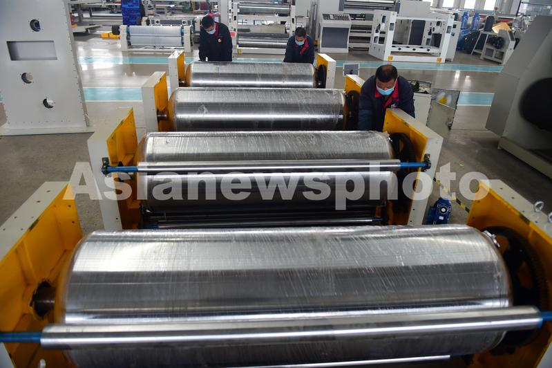图片说明:11月26日,河北省东光县一家纸箱设备公司,工人在为国外客户生产包装机械。