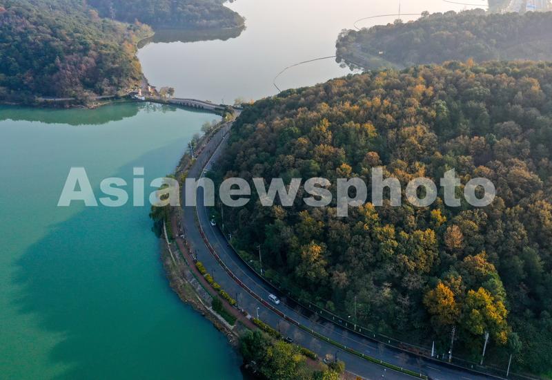 12月4日,车辆在东湖景区行驶。(无人机照片)。