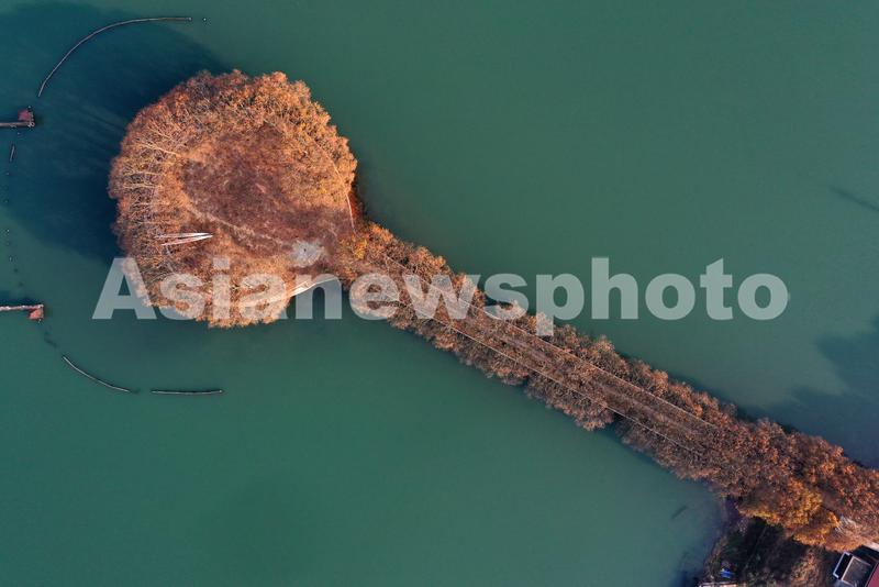 12月4日,在东湖景区拍摄的梧桐树(无人机照片)。