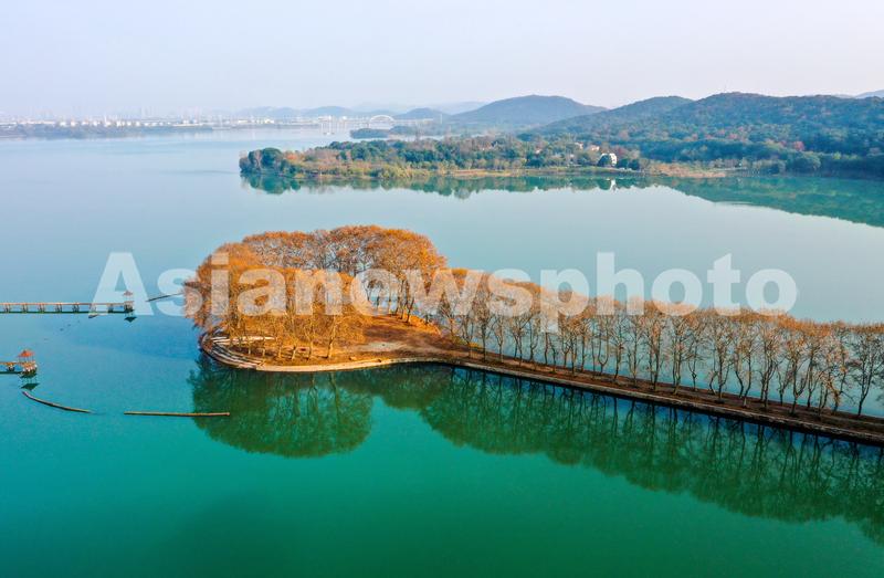 12月4日,在东湖景区拍摄的梧桐树(无人机照片)。