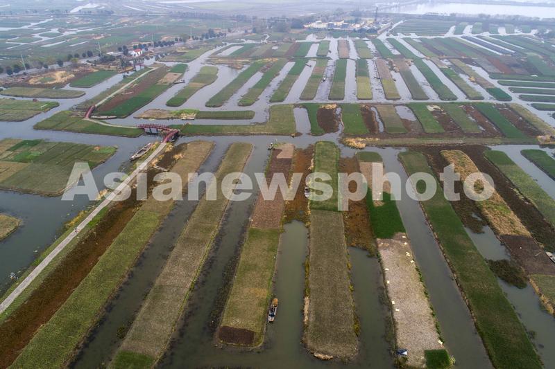 2020年12月10日,在位于江苏省兴化市垛田街道高家荡村的种植基地,农民在收获香葱(无人机照片)。