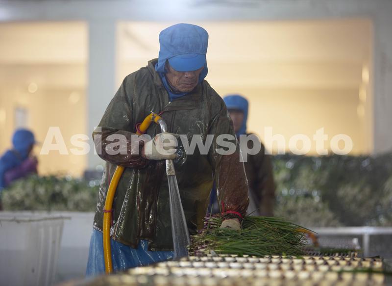 2020年12月10日,在江苏省兴化市垛田街道王横村,农民在清理加工香葱。
