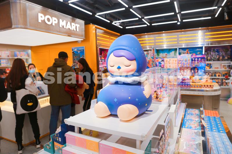 图片说明:2020年12月5日,上海,喜爱创意玩具产品的顾客粉丝在网红潮玩盲盒品牌泡泡玛特线下旗舰店内购物消费。