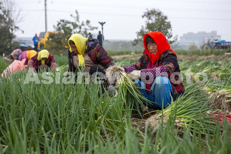 2020年12月10日,在位于江苏省兴化市垛田街道王横村的种植基地,农民在收获香葱。