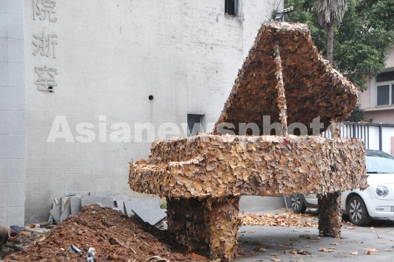 图片说明:12月14日,中国美术学院“秋叶艺术节”上展示的梧桐落叶雕塑。