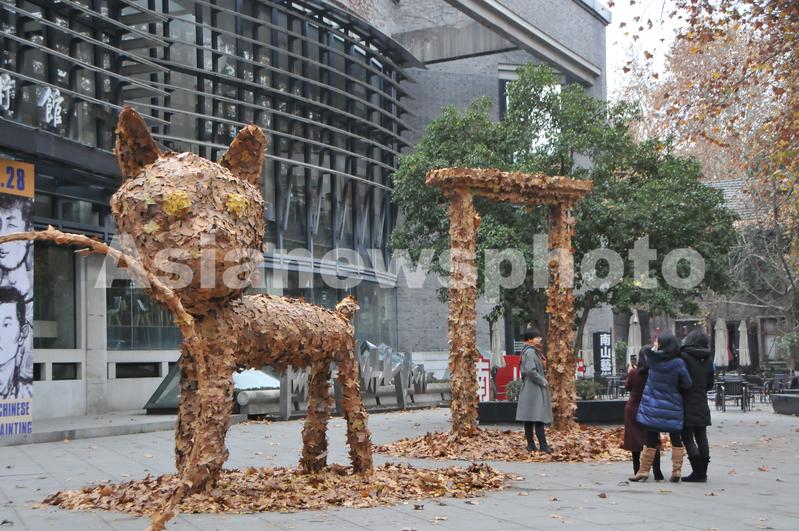 图片说明:12月14日,中国美术学院“秋叶艺术节”上展示的梧桐落叶雕塑。