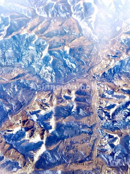 2020年12月25日,俯瞰雪后的山西吕梁山(拍摄于北京飞往重庆的航班上)。