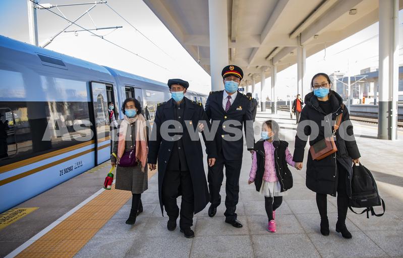 图片说明:12月26日10时多,"复兴号"动车组抵达甘肃庆阳站。西安机务段高铁司机梁秀岩带着爷爷、妈妈、女儿、妻子,从西安北站出发,乘坐西安开往银川首趟“复兴号”动车组,一起回家乡庆阳。