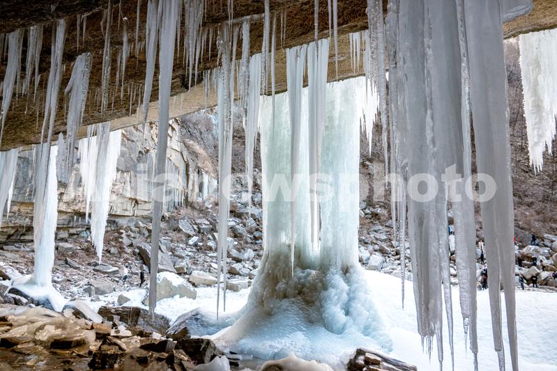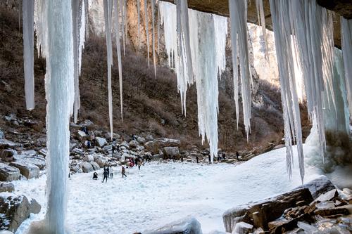 图片说明:2020年12月25日,河南省林州市太行大峡谷内的巨型冰瀑景观。