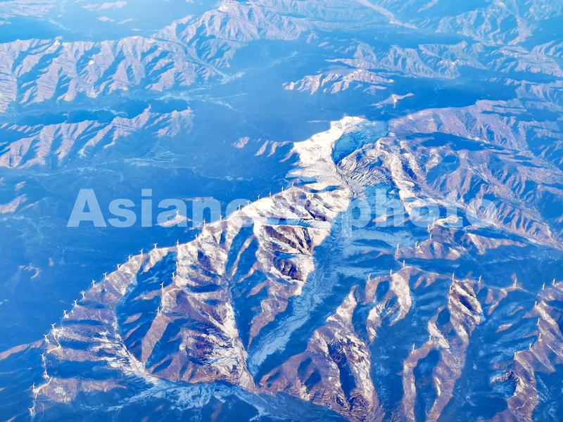 2020年12月25日,俯瞰雪后的山西吕梁山(拍摄于北京飞往重庆的航班上)。