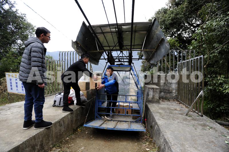 图片说明:当地群众通过索道进出小山村,到对面集镇赶场购物。