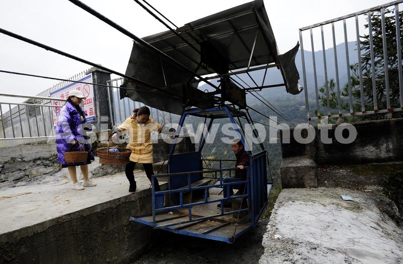 图片说明:这是当地群众通过索道进出小山村,到对面集镇赶场购物。