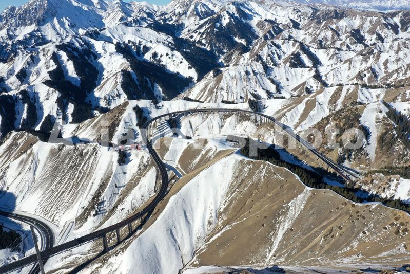 2021年1月17日,无人机航拍新疆伊犁霍城县果子沟大桥。