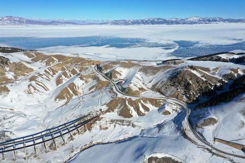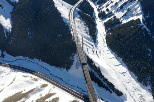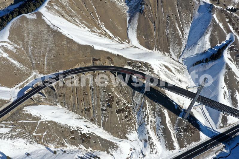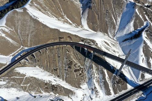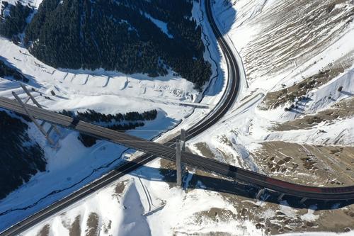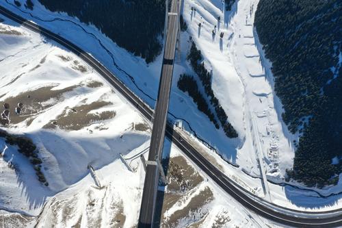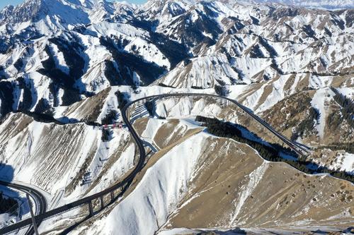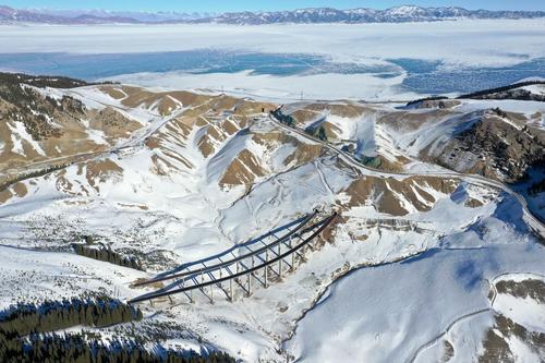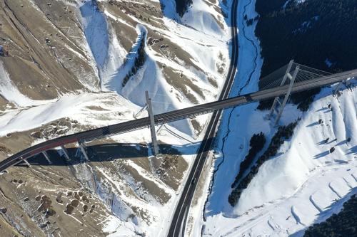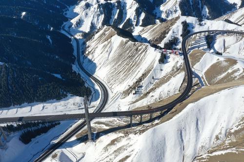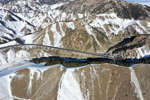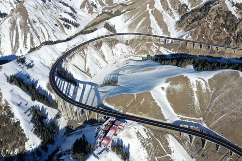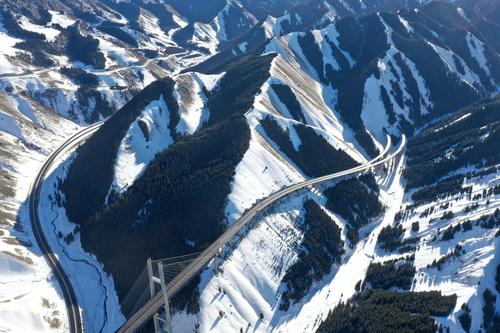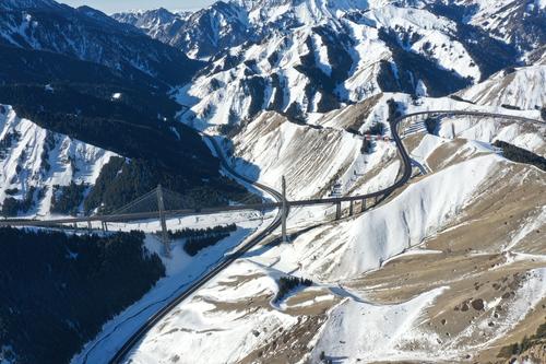 2021年1月17日,无人机航拍新疆伊犁霍城县果子沟大桥。