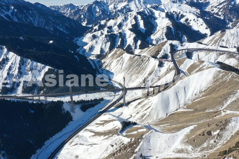 2021年1月17日,无人机航拍新疆伊犁霍城县果子沟大桥。