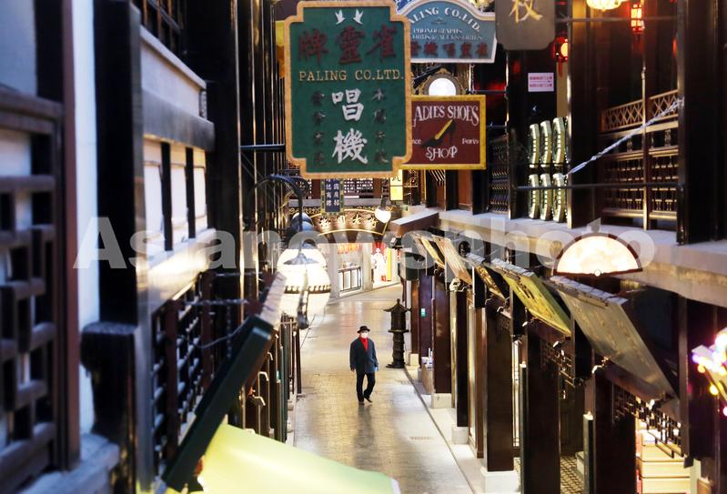 2021年1月25日,上海,新冠疫情阴影使得旅游地标豫园商城夜经济消费人流大幅减少陷入冷清。
