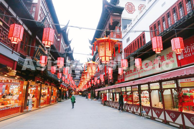 2021年1月25日,上海,旅游地标豫园商城消费人流下降,但春节民俗艺术灯会依然正常筹备。