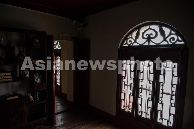 图片说明:2021年1月31日,湖北鄂州,在观音阁二楼拍摄到的雕花窗户剪影。