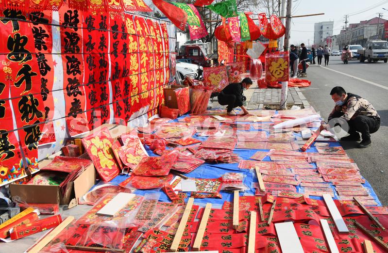 2021年1月31日,人们在山东枣庄山亭大集选购春联。