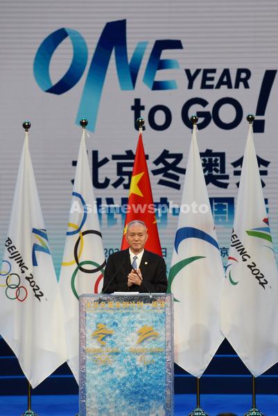 图片说明:北京市委书记、北京冬奥组委主席蔡奇在北京冬奥会开幕倒计时一周年活动现场致辞。