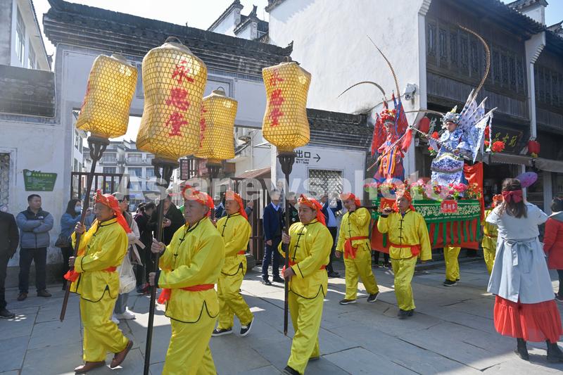 图片说明:2021年2月15日,农历正月初四,江西省婺源县江湾镇农民举行极富传统农耕文化特色的“豆腐架”民俗表演,庆新春佳节。