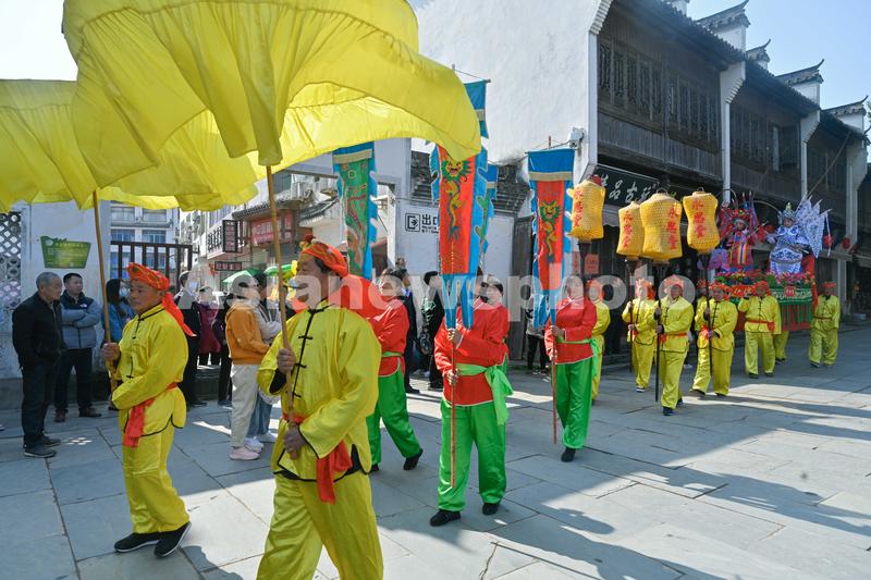 图片说明:2021年2月15日,农历正月初四,江西省婺源县江湾镇农民举行极富传统农耕文化特色的“豆腐架”民俗表演,庆新春佳节。