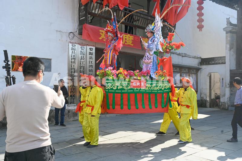 图片说明:2021年2月15日,农历正月初四,江西省婺源县江湾镇农民举行极富传统农耕文化特色的“豆腐架”民俗表演,庆新春佳节。
