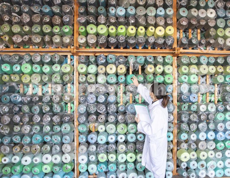 2021年2月18日,在江苏省海安市立发街道一家纺织公司内,工人在工作岗位上忙碌。