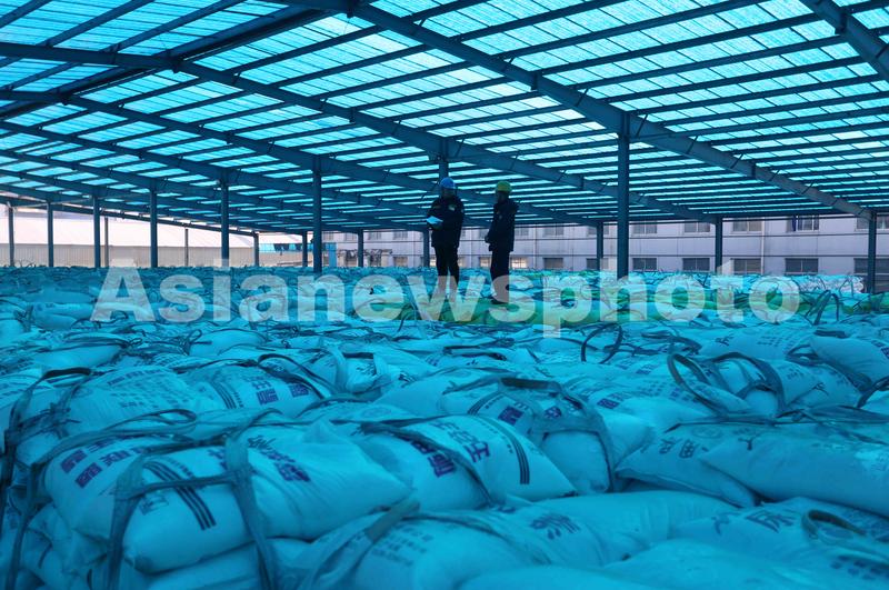 2021年2月19日,在山东省临沂市沂南县经济开发区一家化工集团仓库,工作人员对出库化肥进行清点。