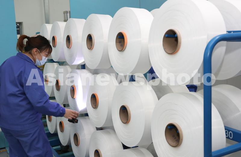 2021年2月18日拍摄的恒力(南通)纺织新材料产业园二期项目忙碌的生产车间。位于江苏南通通州区开沙岛的恒力(南通)纺织新材料产业园于2020年9月获评国家级“绿色工厂”。据介绍,四期项目全部建成后,纺织新材料产业园将成为全球单体产能最大、品种最全的纤维生产基地。