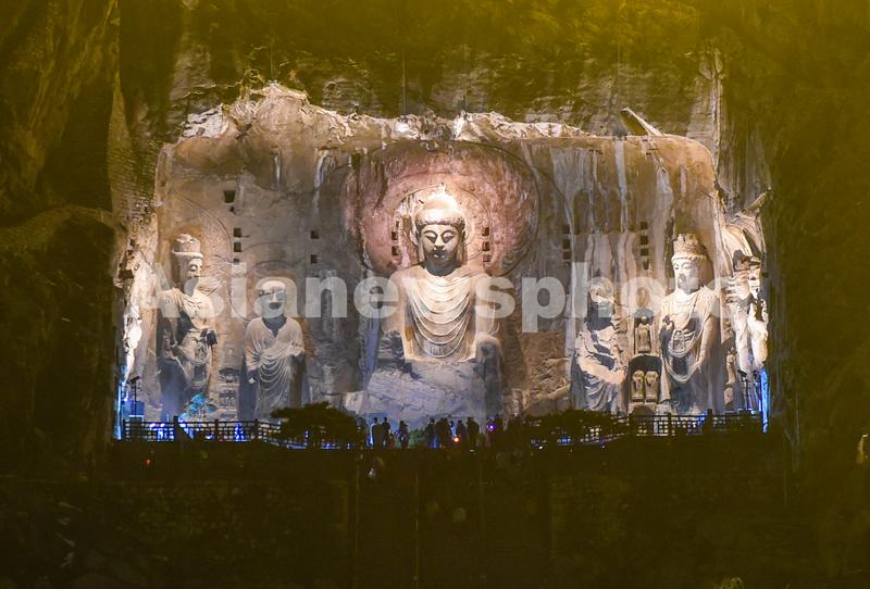 河南洛阳:“夜游”龙门石窟