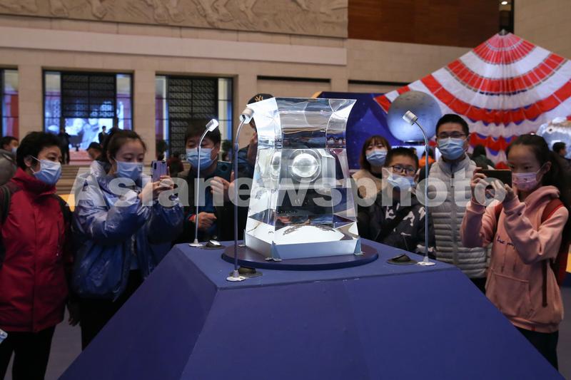 2021年2月28日,观众参观在中国国家博物馆举行的“月球样品001号·见证中华飞天梦”展。