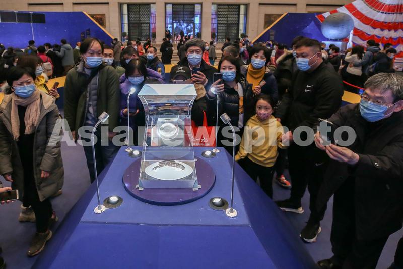 2021年2月28日,观众参观在中国国家博物馆举行的“月球样品001号·见证中华飞天梦”展。