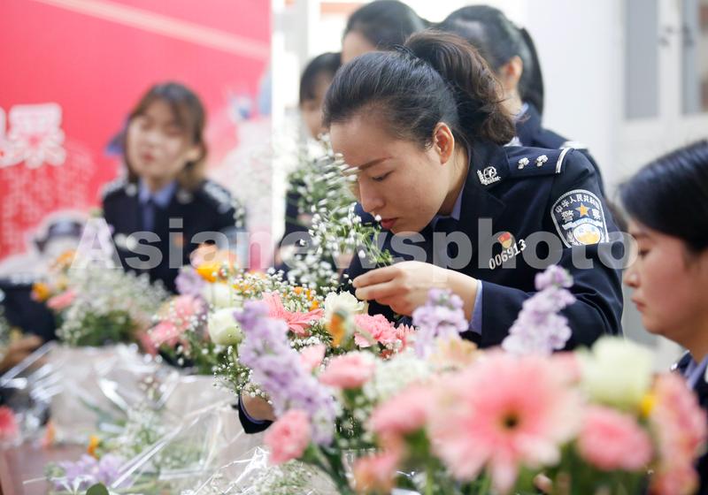 陕西大荔:女警学习插花迎接妇女节 查看组图