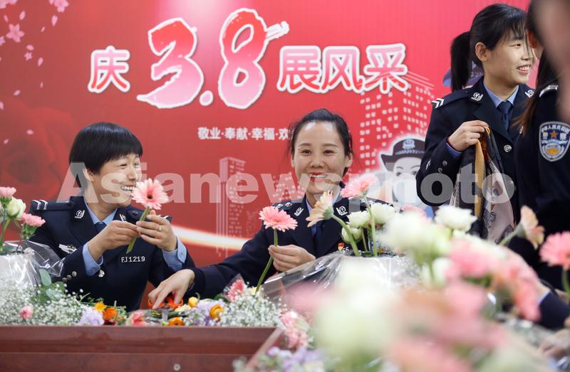 陕西大荔:女警学习插花迎接妇女节 查看组图