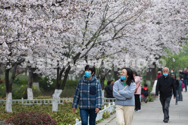 2021年3月16日,春日的南京玄武湖景区樱花盛开,吸引游人前来赏花游览。