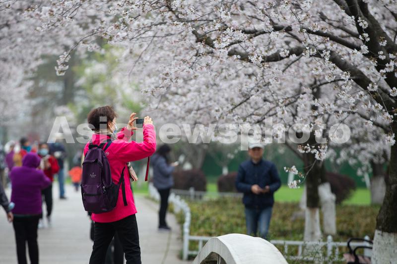 2021年3月16日,春日的南京玄武湖景区樱花盛开,吸引游人前来赏花游览。