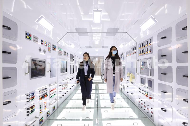 2021年3月19日,观众在天和号核心舱参观。