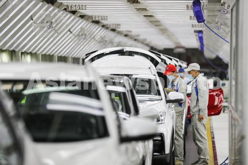 图片说明:2021年3月18日,在四川省宜宾三江新区宜宾凯翼汽车有限公司总装车间,工人在智慧生产线上忙碌。