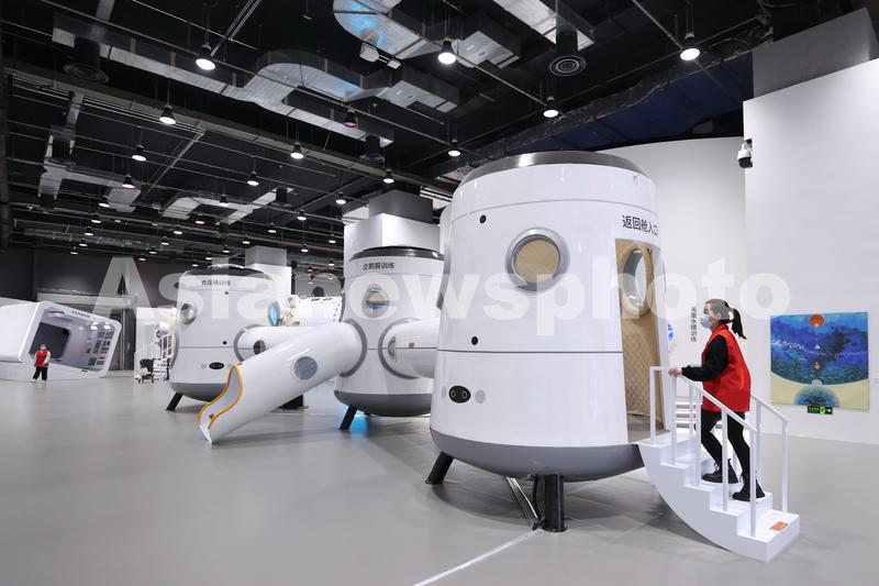 2021年3月19日,北京,观众在中国科技馆参观“从这里飞向太空——庆祝建党100周年中国载人航天互动科普展”,该展览于3月18日在京开幕。展览设置“时光隧道”“为梦而战”“圆梦太空”“太空家园”等展区,呈现中国载人航天发展历程,并采用最新的机电互动、裸眼3D、虚拟现实等互动体验项目,让公众亲身体验航天员选拔训练、发射过程、在轨生活和返回过程。