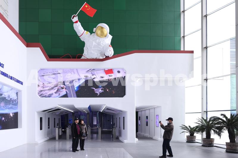 2021年3月19日,北京,观众在中国科技馆参观“从这里飞向太空——庆祝建党100周年中国载人航天互动科普展”,该展览于3月18日在京开幕。展览设置“时光隧道”“为梦而战”“圆梦太空”“太空家园”等展区,呈现中国载人航天发展历程,并采用最新的机电互动、裸眼3D、虚拟现实等互动体验项目,让公众亲身体验航天员选拔训练、发射过程、在轨生活和返回过程。