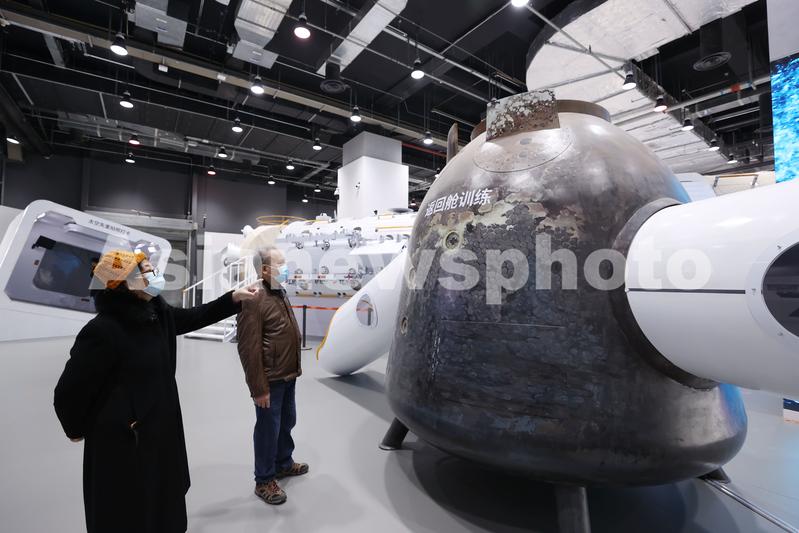 2021年3月19日,北京,观众在中国科技馆参观“从这里飞向太空——庆祝建党100周年中国载人航天互动科普展”,该展览于3月18日在京开幕。展览设置“时光隧道”“为梦而战”“圆梦太空”“太空家园”等展区,呈现中国载人航天发展历程,并采用最新的机电互动、裸眼3D、虚拟现实等互动体验项目,让公众亲身体验航天员选拔训练、发射过程、在轨生活和返回过程。