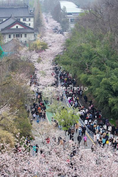 2021年3月20日,春分时节,南京鸡鸣寺路两旁盛开的樱花灿若云霞,大批市民游客慕名前来赏樱游览,享受春日美景。