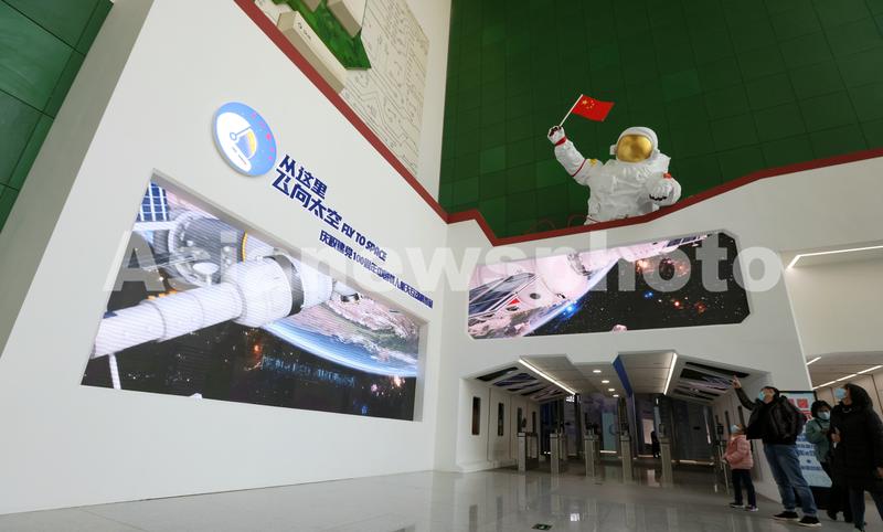 图片说明:3月20日,观众在中国科技馆内参观“中国载人航天互动科普展”。