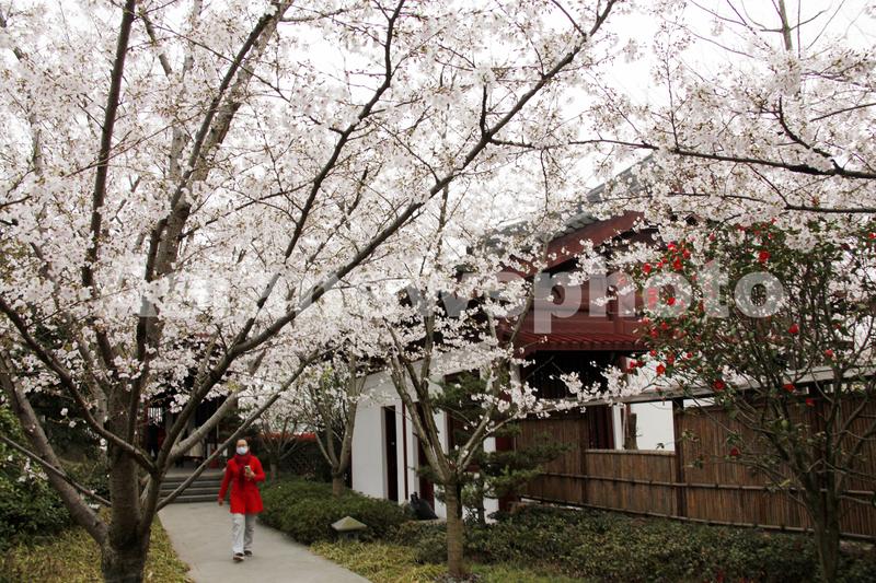 图片说明:3月20日,游人在南京牛首山文化旅游区观赏樱花。