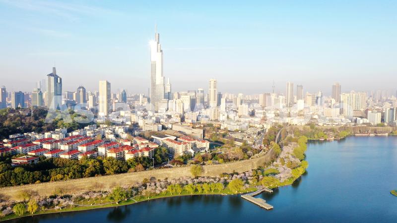 图片说明:2021年3月23日,在南京玄武湖公园解放门附近明城墙下拍摄的樱花。